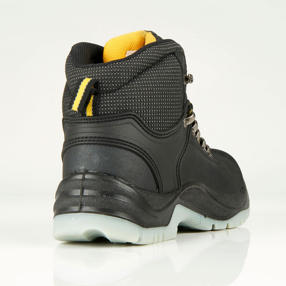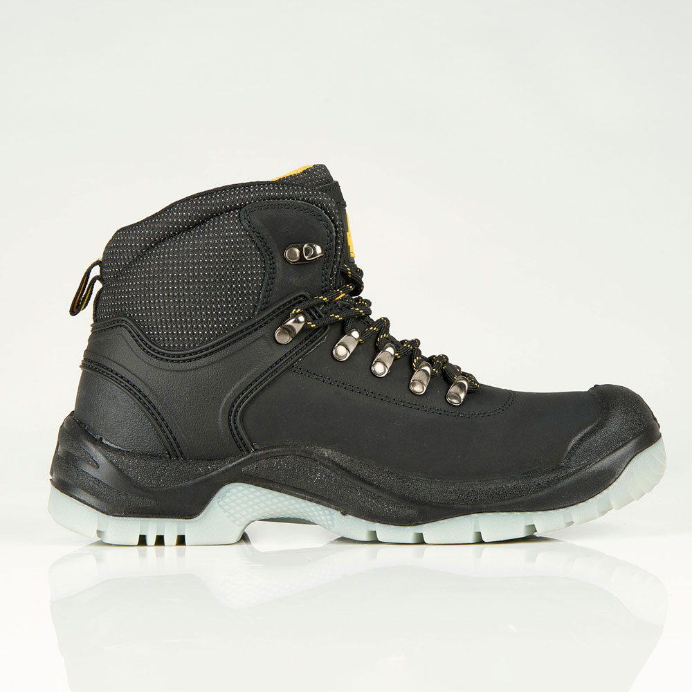 Hardwearing & rugged safety boot crafted with full grain crazy horse leather upper, steel toe & midsole, injected moulded PU scuff cap and durable PU/TPU outsole.